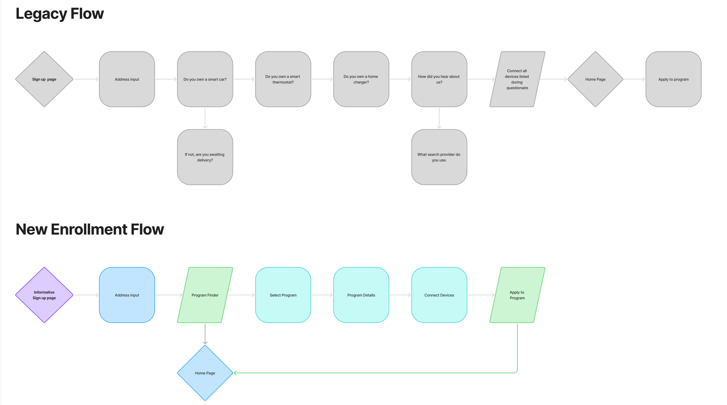 Move three numbers: sign-up conversion, enrollment completion, and retention. Beyond the metrics, the deeper goal was a scalable enrollment architecture, one flexible enough to support any utility program without custom design work every time, unlocking faster contract growth.