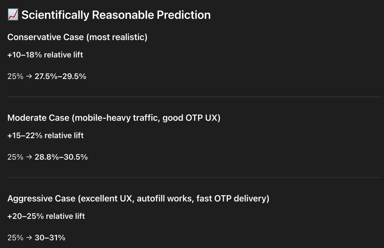 Also I leveraged ChatGPT to put together an ROI analysis if we switched over to OTP to better understand how this could impact conversion/lift.